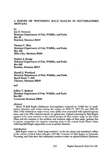 Published in Raptor Research, in 1981, in volume 15, issue 4, pages 113-120