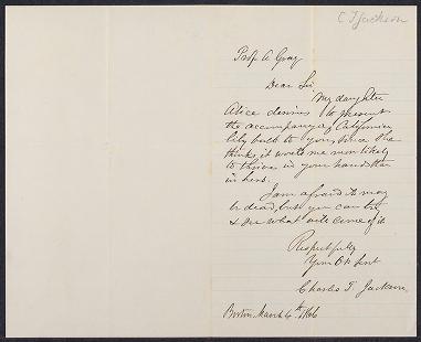 Published in Asa Gray correspondence. Senders J, 1844-1891 (inclusive), in 1866, pages 1