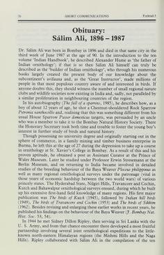 Published in Forktail, in 1987, in volume 3, pages 70-72