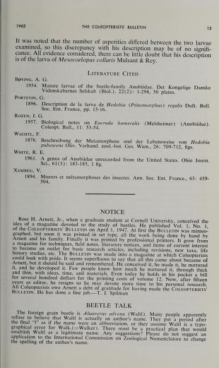Published in The Coleopterists Bulletin, in 1962, in volume 16, issue 1, pages 15