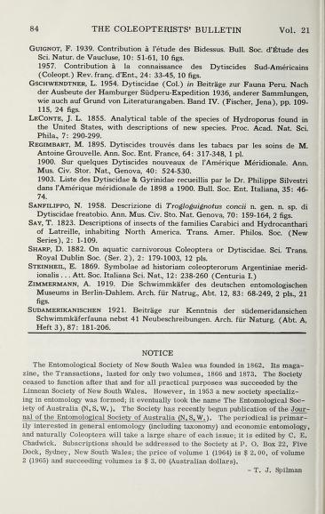 Published in The Coleopterists Bulletin, in 1967, in volume 21, issue 3, pages 84