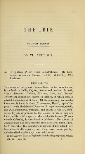 Published in Ibis, in 1873, in volume 3, issue 3, pages 296-321