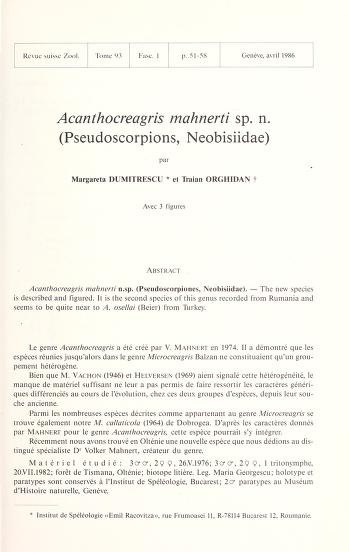 Published in Revue Suisse De Zoologie, in 1986, in volume 93, pages 51-58