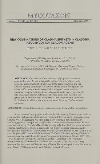 Published in Mycotaxon, in 2001, in volume 78, pages 499-502