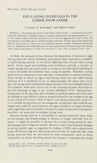 Published in The Wilson Bulletin, in 1993, in volume 105, issue 3, pages 414-426