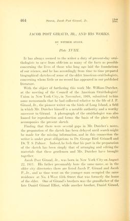 Published in The Auk, in 1919, in volume 36, pages 464-472