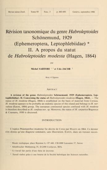 Published in Revue Suisse De Zoologie, in 1986, in volume 93, pages 683-691