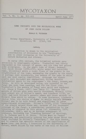Published in Mycotaxon, in 1977, in volume 5, issue 2, pages 415-422