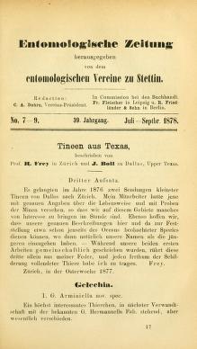 Published in Entomologische Zeitung Stettin, in 1876, in volume 37, pages 401-405