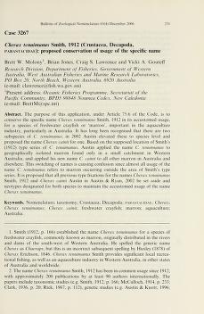 Published in Bulletin of Zoological Nomenclature, in 2006, in volume 63, issue 4, pages 231-235