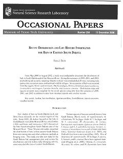 Published in Occasional Papers Museum of Texas Tech University, in 2008, in volume 281, pages 1-28