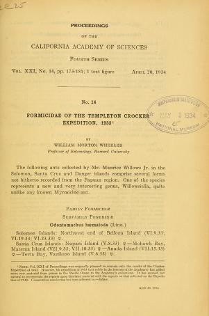 Published in Proceedings of the California Academy of Sciences, in 1934, in volume 21, pages 173-181