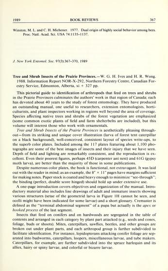 Published in Journal of The New York Entomological Society, in 1989, in volume 97, issue 3, pages 367-370