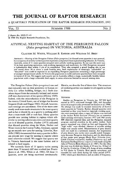 Published in Journal of Raptor Research, in 1988, in volume 22, issue 2, pages 37-43