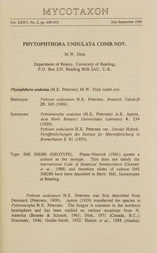 Published in Mycotaxon, in 1989, in volume 35, issue 2, pages 449-453