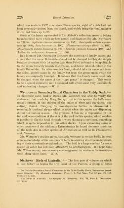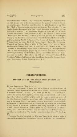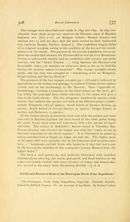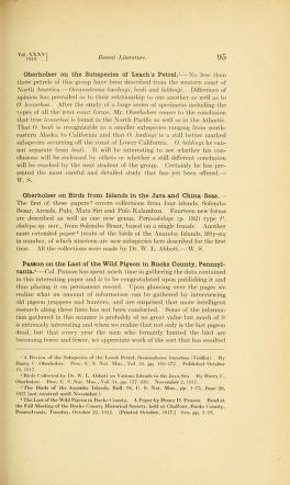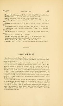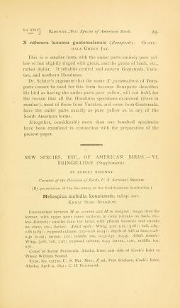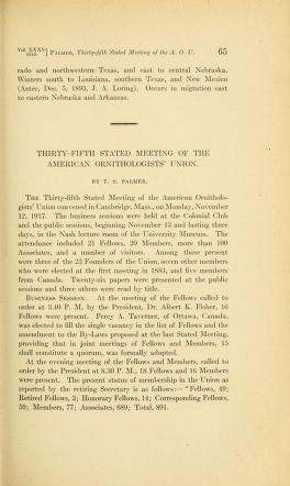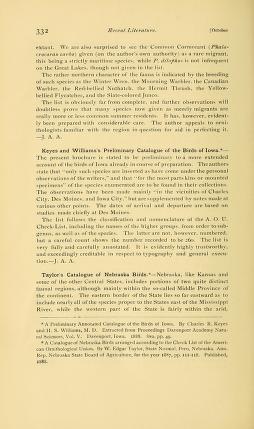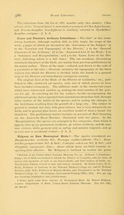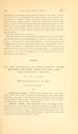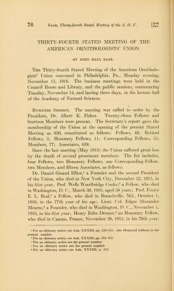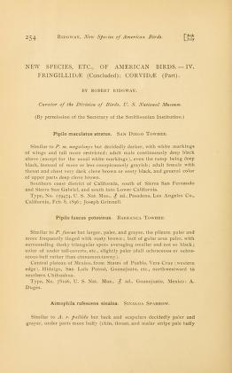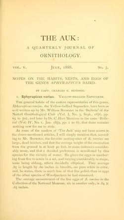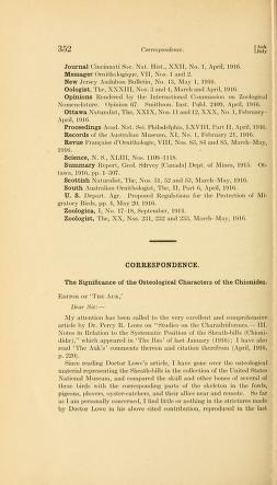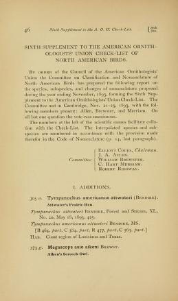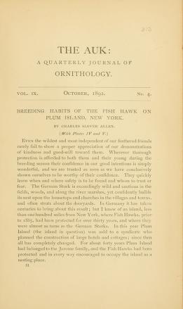 Ornithology, formerly The Auk and The Auk: Ornithological Advances, is a peer-reviewed scientific journal and the official publication of the American Ornithological Society (AOS). It was established in 1884 and is published quarterly. The journal covers the anatomy, behavior, and distribution of birds. It was named for the great auk, the symbol of the AOS. In 2018, the American Ornithology Society announced a partnership with Oxford University Press to publish The Auk: Ornithological Advances and The Condor: Ornithological Applications .