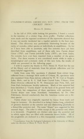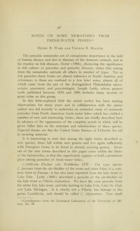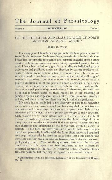 The Journal of Parasitology is a peer-reviewed medical journal covering research on parasites published bimonthly by Allen Press on behalf of the American Society of Parasitologists. Content includes research articles, brief research notes, announcements of the society, and book reviews. It was founded and edited by Henry Baldwin Ward in 1914.