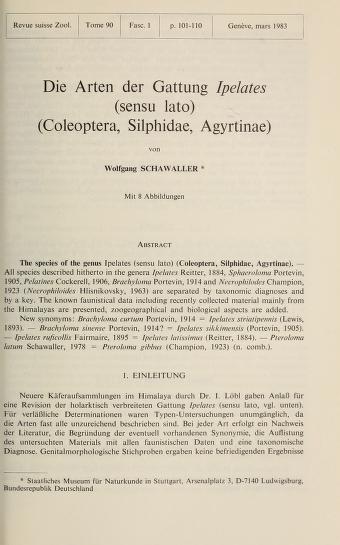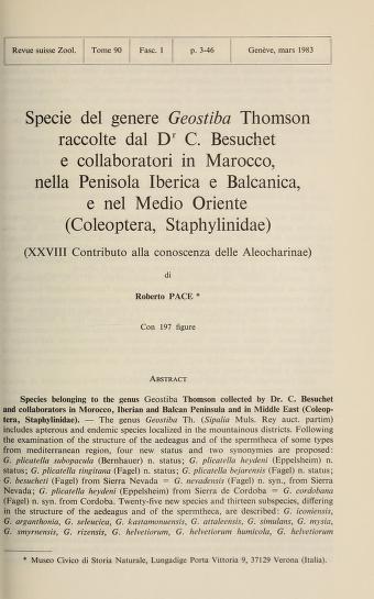 Published in Revue Suisse De Zoologie, in 1983, in volume 90, pages 3-46