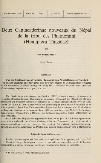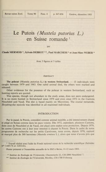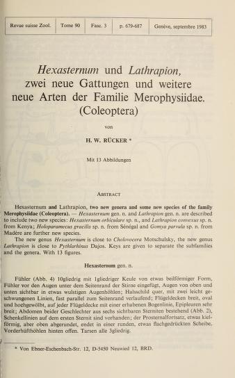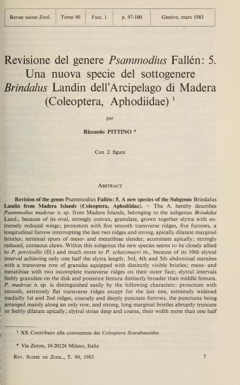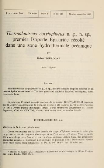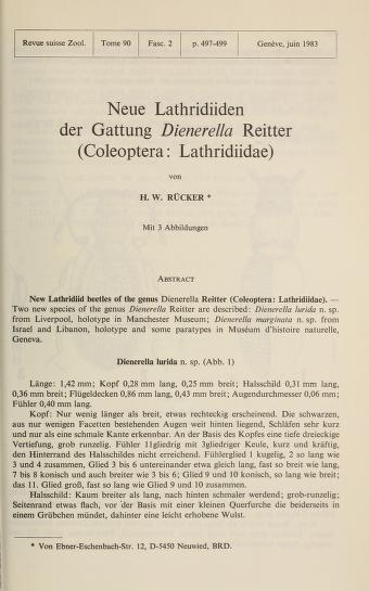 Published in Revue Suisse De Zoologie, in 1983, in volume 90, pages 497-499