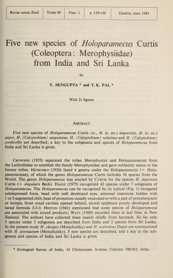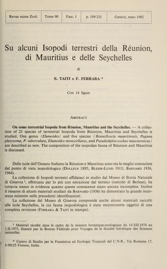 Published in Revue Suisse De Zoologie, in 1983, in volume 90, pages 199-231
