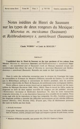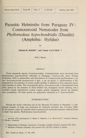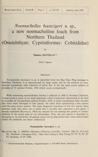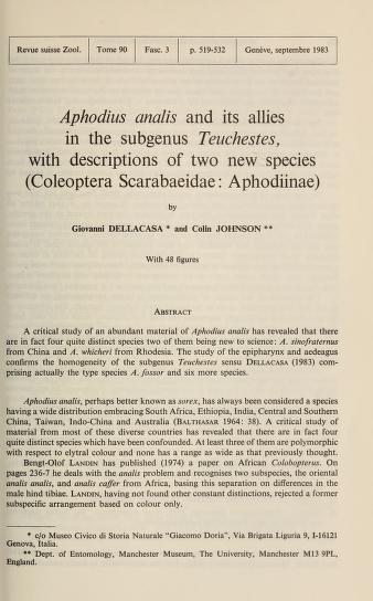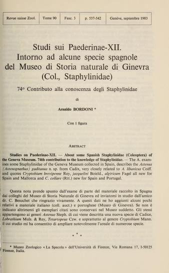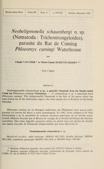 Published in Revue Suisse De Zoologie, in 1983, in volume 90, pages 559-561
