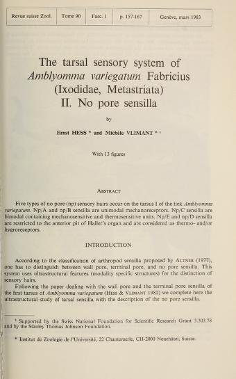 Published in Revue Suisse De Zoologie, in 1983, in volume 90, pages 157-167