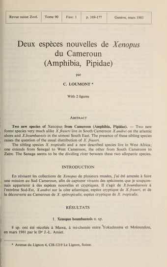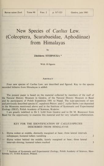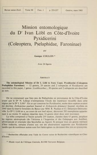 Published in Revue Suisse De Zoologie, in 1983, in volume 90, pages 233-257
