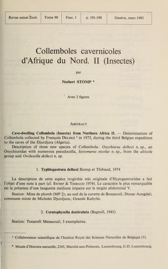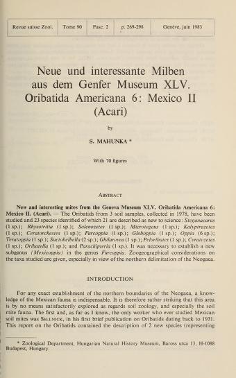 Published in Revue Suisse De Zoologie, in 1983, in volume 90, pages 269-298