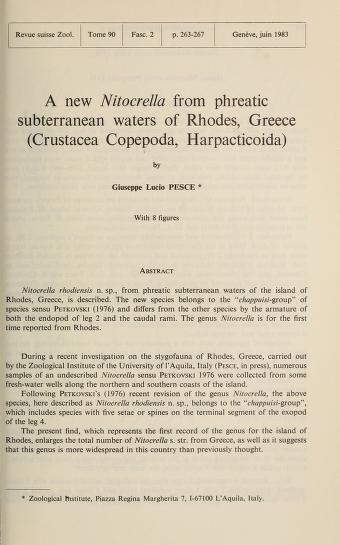 Published in Revue Suisse De Zoologie, in 1983, in volume 90, pages 263-267