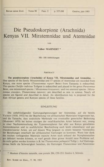 Published in Revue Suisse De Zoologie, in 1983, in volume 90, pages 357-398