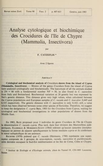 Published in Revue Suisse De Zoologie, in 1983, in volume 90, pages 407-415