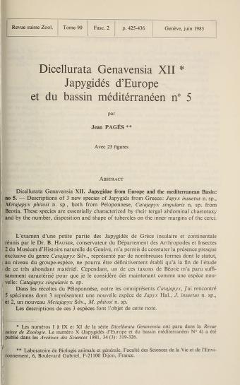 Published in Revue Suisse de Zoologie, in 1983, in volume 90, issue 2, pages 425-436