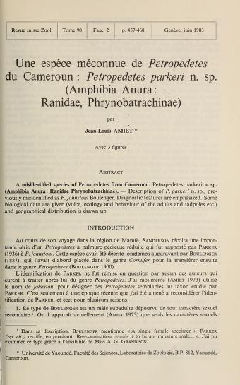 Published in Revue Suisse De Zoologie, in 1983, in volume 90, pages 457-468