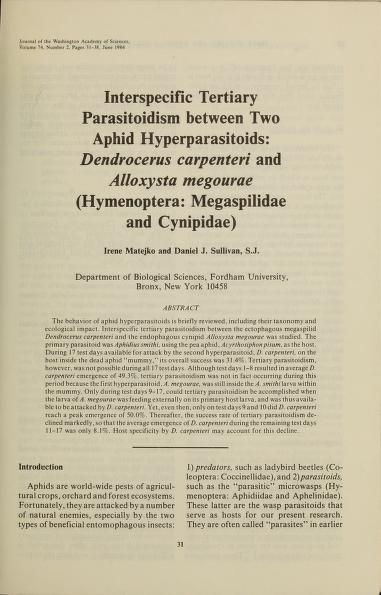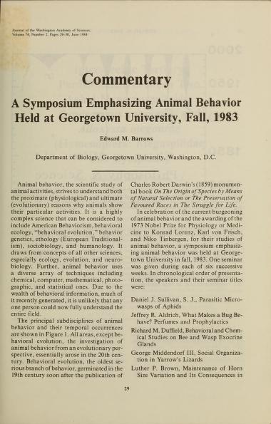 Published in Journal of The Washington Academy of Sciences, in 1984, in volume 74, pages 31-38
