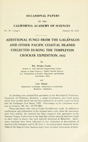 Published in Occasional Papers of the California Academy of Sciences, in 1961, in volume 29, pages 1-5
