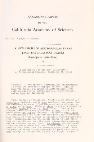 Published in Occasional Papers of The California Academy of Sciences, in 1972, in volume 96, pages 1-7