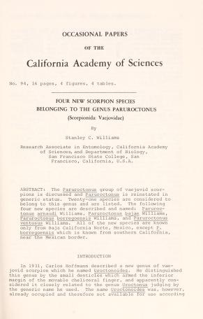 Published in Occasional Papers of The California Academy of Sciences, in 1972, in volume 93, pages 1-13