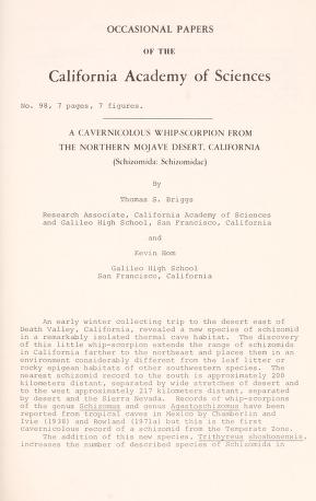 Published in Occasional Papers of The California Academy of Sciences, in 1972, in volume 98, pages 1-7