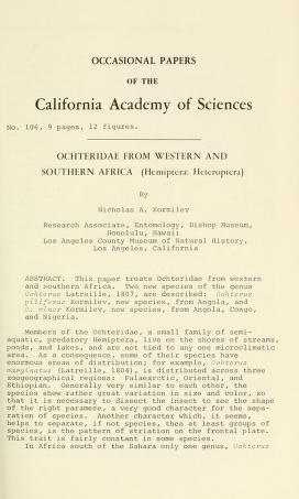 Published in Occasional Papers of The California Academy of Sciences, in 1973, in volume 106, pages 1-9