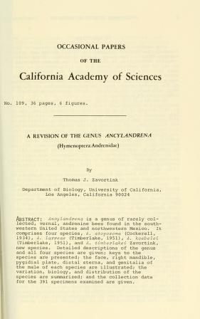 Published in Occasional Papers of The California Academy of Sciences, in 1973, in volume 109, pages 1-36