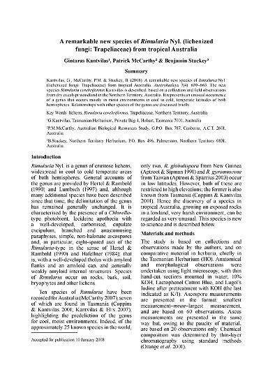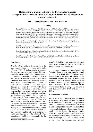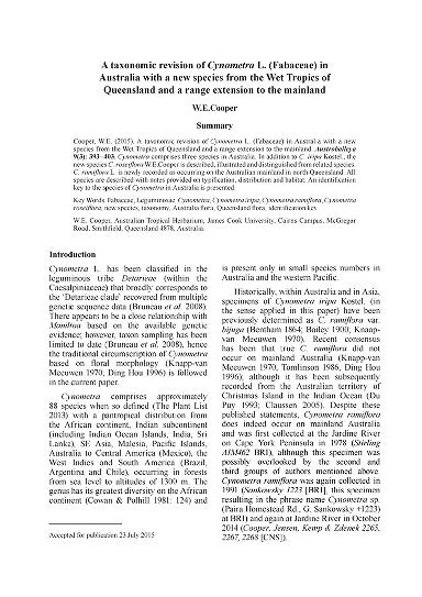 Austrobaileya is a peer-reviewed annual scientific journal published by the Queensland Herbarium. It covers systematic botany, relating to the flora of Queensland and in particular tropical Australia. It was established in 1968 as Contributions from the Queensland Herbarium, obtaining its current title in 1977, with volume numbering restarted at 1. Since 2015, the journal is published open access, with print versions available on subscription. Older issues are available online from JSTOR. The journal was named after the Queensland endemic genus Austrobaileya.