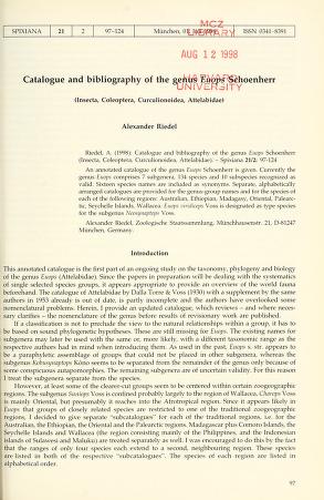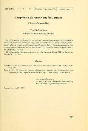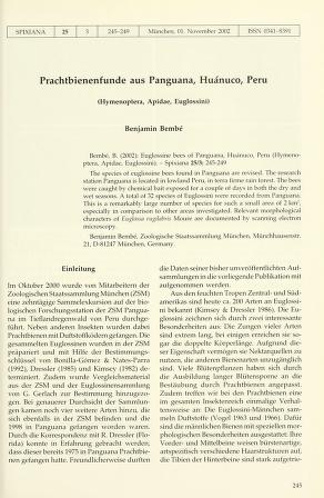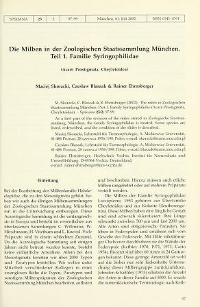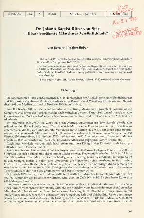 Spixiana is a biannual peer-reviewed scientific journal published by Verlag Dr. Friedrich Pfeil on behalf of the Bavarian State Collection of Zoology, covering research in zoology. Spixiana publishes original works in the fields of taxonomy, morphology, phylogeny, and zoogeography. It also publishes monographs in supplements.