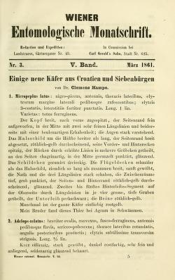 Published in Wiener Entomologische Monatsschrift, in 1861, in volume 5, pages 1-8