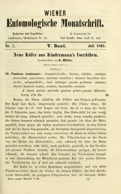 Published in Wiener Entomologische Monatsschrift, in 1861, in volume 5, pages 43-64