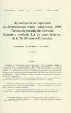 Dynamique de la population de Sphaerostoma maius Janiszewska, 1949, Trématode parasite du Chevaine (Leuciscus cephalus L.) du cours inférieur de la Têt (Pyrénées-Orientales)
